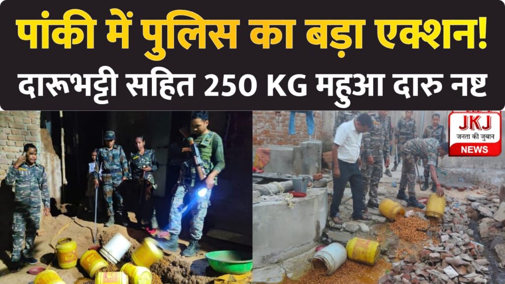 पांकी में पुलिस का छापा” “250 KG महुआ नष्ट”