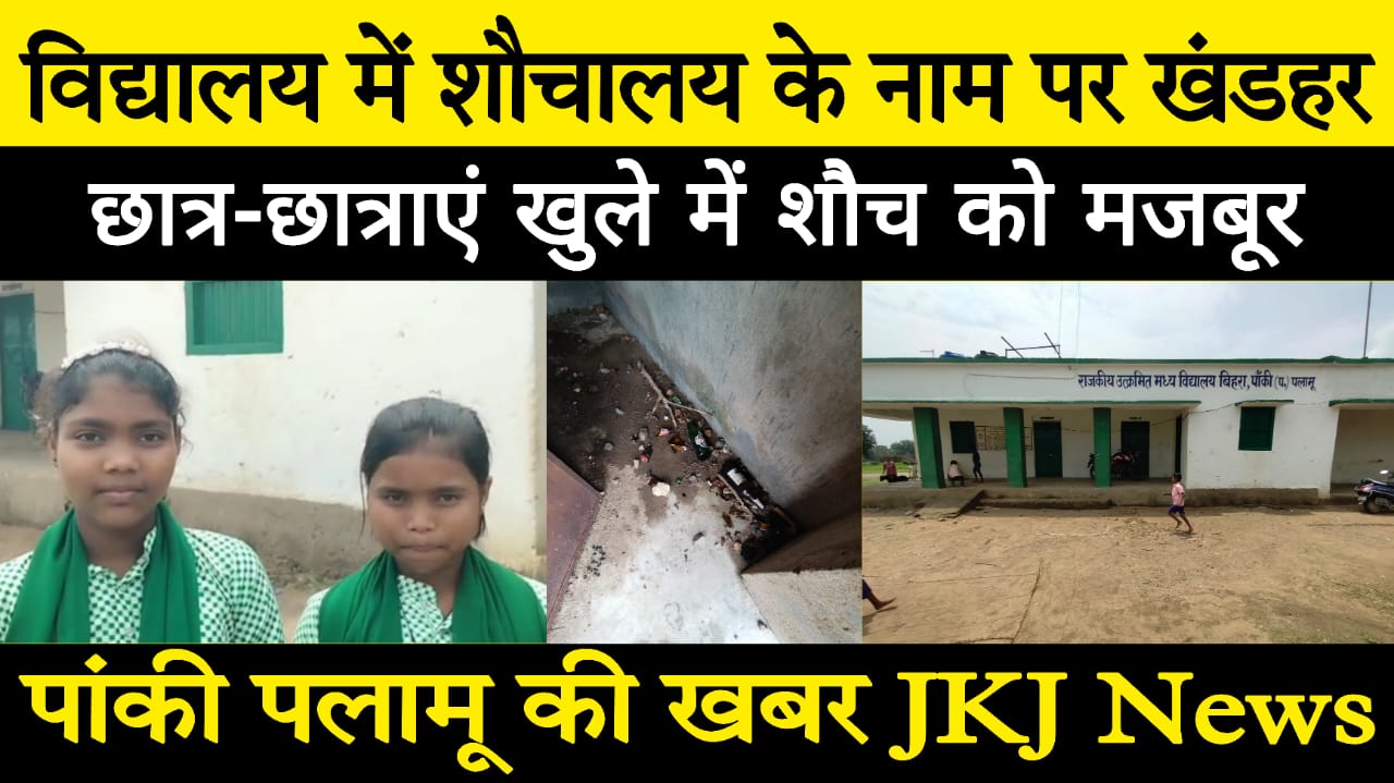 Jharkhand Government School (JKJ News) : पलामू जिले के पांकी प्रखंड अंतर्गत बिहार गांव स्थित राजकीय उत्क्रमित मध्य विद्यालय की स्थिति अत्यंत ही चिंताजनक है। विद्यालय में मूलभूत सुविधाओं का घोर अभाव है, विशेषकर शौचालय व्यवस्था पूरी तरह से ध्वस्त हो चुकी है। वर्षों से मरम्मत न होने के कारण शौचालय खंडहर में तब्दील हो गया है, जिसमें केवल गंदगी और कचरा भरा पड़ा है।