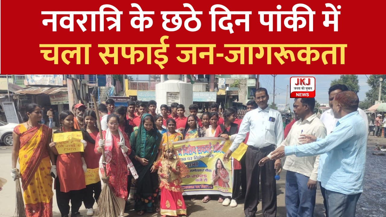 Panki Durga Puja (JKJ News) : नवरात्रि के पावन अवसर पर जहां एक ओर पूरा क्षेत्र भक्ति और आस्था में डूबा हुआ है, वहीं दूसरी ओर पांकी में समाज की भलाई और स्वच्छता के संदेश को आगे बढ़ाने के लिए एक अनूठा प्रयास किया गया। शनिवार को फाइटर मंजूलता की अगुवाई में पांकी में सफाई जन-जागरूकता अभियान का आयोजन किया गया।