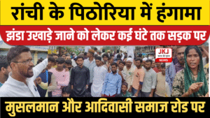Ranchi News (JKJ News) । ईद मिलादुन्नबी (12 रबी-उल-अव्वल) के मौके पर पिथोरिया थाना क्षेत्र के सोसो चौक पर बड़ा विवाद खड़ा हो गया। जुलूस-ए-मोहम्मदी की तैयारी के बीच लगाए गए धार्मिक झंडों में से कुछ अज्ञात तत्वों द्वारा उखाड़ दिए गए। इस घटना से लोगों में गुस्सा फैल गया और देखते ही देखते बड़ी संख्या में लोग चौक पर इकट्ठा होकर विरोध प्रदर्शन करने लगे।