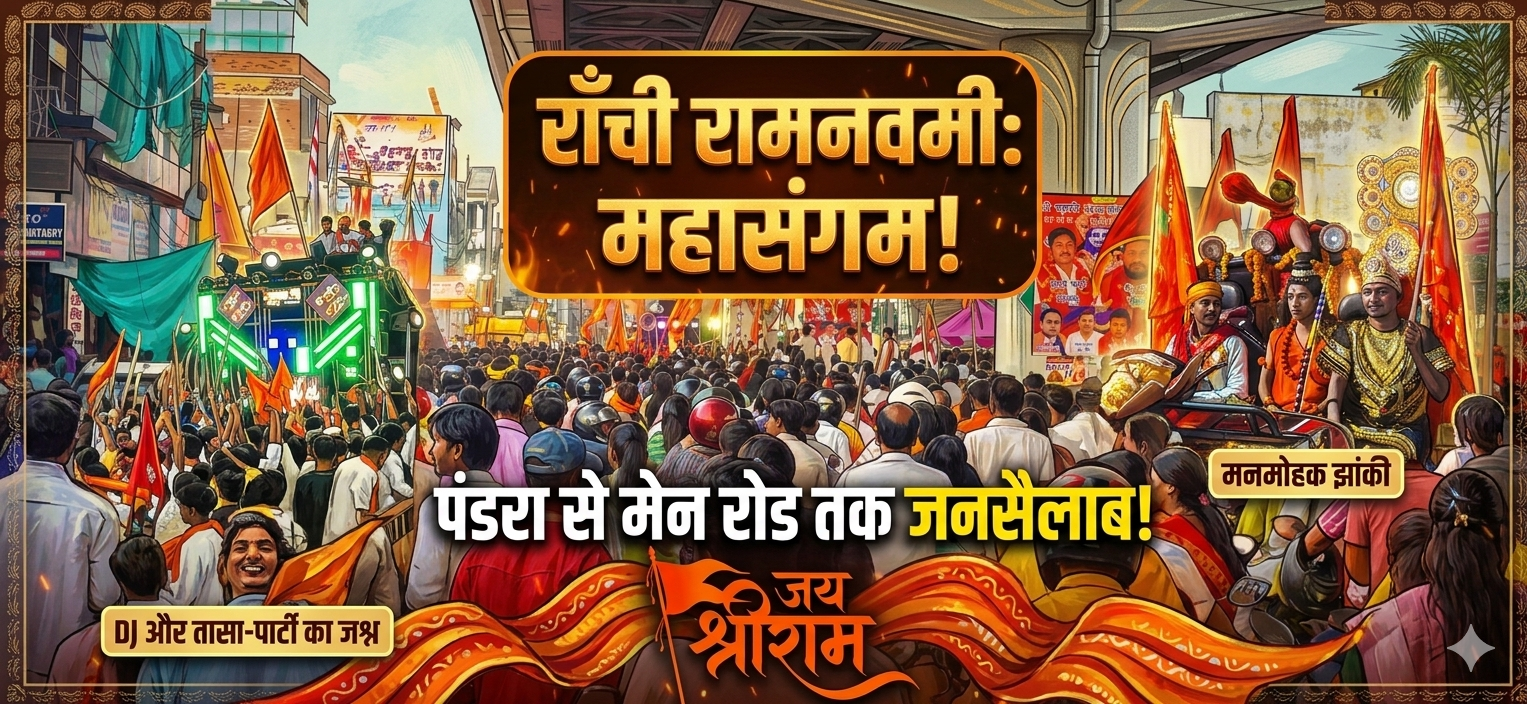 Ranchi Ramnavami 2026 (JKJ News) : झारखंड की राजधानी रांची की रामनवमी केवल एक धार्मिक आयोजन नहीं, बल्कि यह यहाँ की अस्मिता, संस्कृति और सामूहिक शक्ति का प्रतीक बन चुकी है। इस वर्ष का हिंदू नववर्ष और रामनवमी उत्सव कुछ ऐसा रहा जिसे दशकों तक याद रखा जाएगा। यह राँची के हर इलाकों से लेकर मेन रोड (महात्मा गांधी रोड) तक, जिधर भी नजर गई, बस भगवा ध्वज और रामभक्तों का हुजूम ही नजर आया। यह रिपोर्ट उस अद्भुत यात्रा की है, जो भक्ति के विश्वास से शुरू होकर शौर्य के प्रदर्शन तक पहुँची।